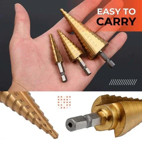 New technology in drill Material – bearing steel combined with a titanium coating. More capable and durable. Step design let makes drilling cutting precise & efficient, Convenience, and Widely used. New Design and Smoother cutting, Make your industrial buildings more perfect.