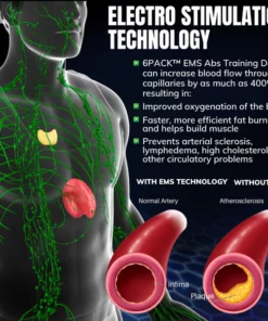 - Fat burning: The 6PACK™ EMS Abs Training Device provides various benefits, including promoting fat burning, accelerating weight loss, regulating cholesterol levels, and reducing the risk of cardiovascular disease. The device has also been shown to enhance mental focus, eliminate food cravings, stabilize blood sugar levels, and improve skin conditions.
