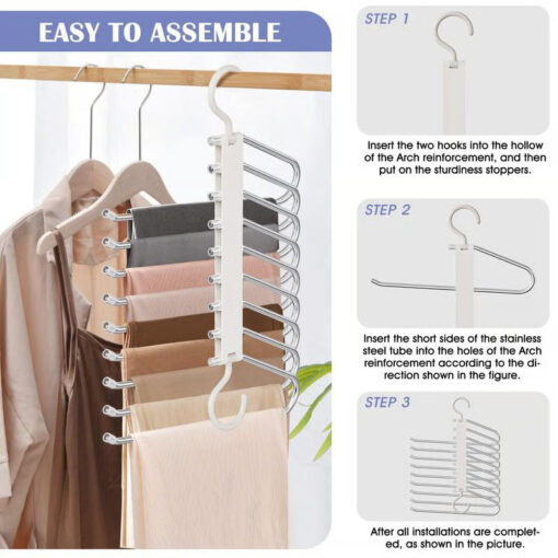 Thanks to its foldable feature, the hanger can be stored away easily, saving space when not in use. Whether you live in a small apartment, dorm, or frequently travel, this compact pants organizer ensures your clothes stay wrinkle-free and organized wherever you go.
