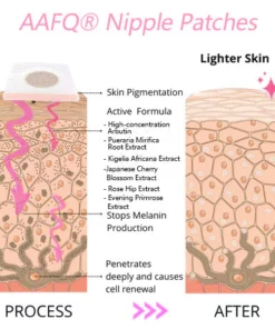 AAFQ® Plump Up & Tighten Skin & Soft & Pinkify Nipple Patches, utilizes natural plant extracts blended with α-arbutin to help instantly lighten the color of nipples. Regular use also helps suppress and inhibit melanocytes.