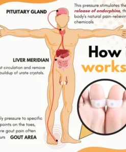 In the case of gout, the AcuHealth™ Gout Aid Toe Rings apply pressure to specific acupoints on the toes, where gout pain often occurs. This pressure stimulates the release of endorphins, the body’s natural pain-relieving chemicals. It also increases blood flow to the affected area, which helps to reduce inflammation and swelling.