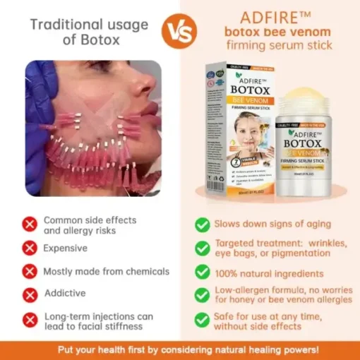 ✓ Effective Results: ADFIRE™ Botox Bee Venom Firming Serum Stick delivers noticeable results. providing visible improvements to your skin’s tone. texture. and firmness.