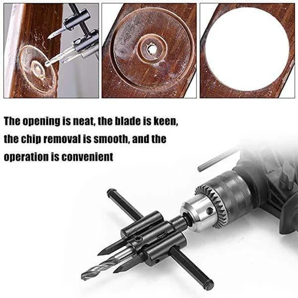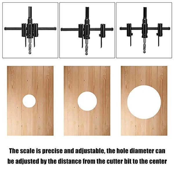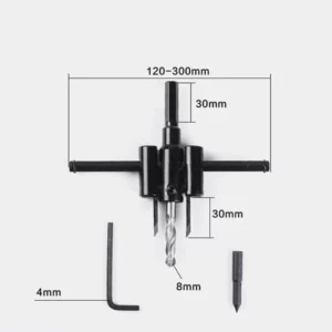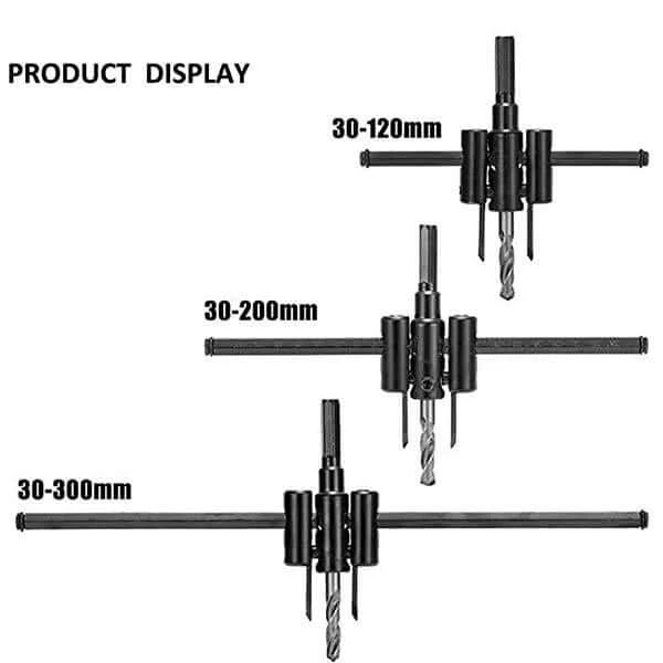This woodworking hole saw with adjustable diameters from 30-120mm, 30-200mm, 30-300mm, so that you can cut different sizes of holes with just one saw. No need to change the drill bits frequently.