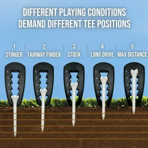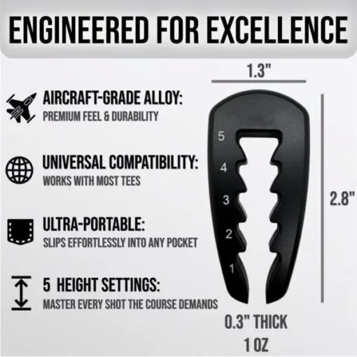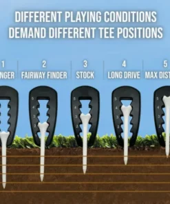 Perfect your tee height for every club and shot type, ensuring you’re always set up for success. Whether you prefer a high tee for optimal distance or a low tee for better control, this tool adapts to your game with ease.