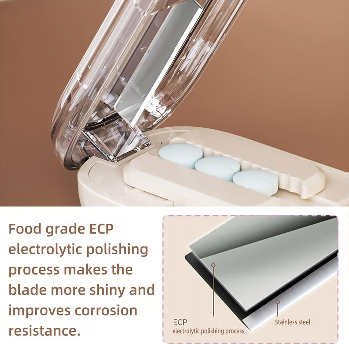 The blade remains safely enclosed and only activates when the lid is firmly pressed, eliminating any risk of accidental cuts. Designed for easy use, even for individuals with limited hand dexterity.