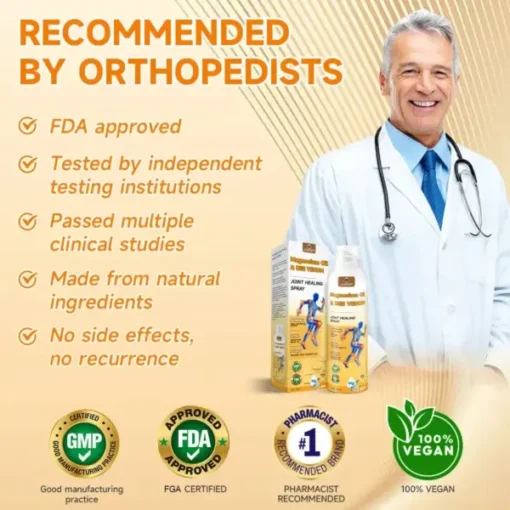 “As an orthopedic surgeon, I endorse ADNOON™ Magnesium Oil & Bee Venom Joint Healing Spray for individuals suffering from joint and bone conditions such as osteoarthritis, rheumatoid arthritis, and other inflammatory disorders. This spary contains active ingredients like bee venom filtrate, glucosamine, and chondroitin, which work to alleviate inflammation, nourish joints, and enhance mobility. It also aids in rebuilding and restoring cartilage and bone tissue, alleviating pain and stiffness while eliminating harmful crystals that can accumulate in joints, thereby improving overall joint function.”