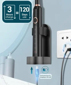 100-Days Battery Life & IPX7 Waterproof: A full charge takes 6 hours & provides a minimum of 100 days of usage (2 uses per day). The toothbrush can be used while in the bath or shower, but be sure to dry it off before attempting to charge it.