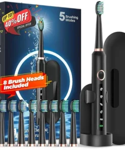 40,000 VPM Smart Electric Toothbrush: Up to 40,000 VPM high vibration sonic toothbrush. Remove up to 99.99% of plaque & stains for a deep clean along the gumline & between the teeth.