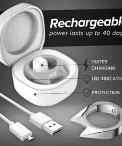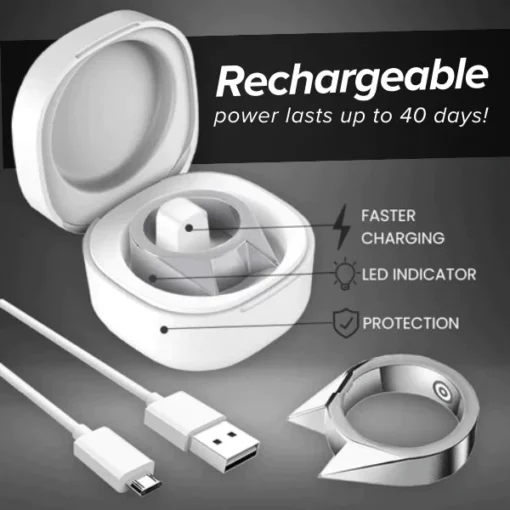 Equipped with an integrated plug for convenient charging and a rechargeable battery, the AEXZR™ Defender Ring remains operational for 30-45 days. Its waterproof and durable construction withstands splashes and dirt, making it a must-have for those prioritizing safety without compromising on style.