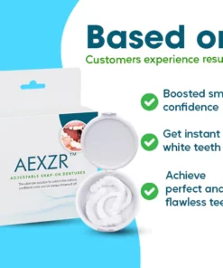 “I can’t express how grateful I am for discovering AEXZR™ Adjustable Snap-On Dentures. As someone who has struggled with confidence due to yellow & slightly crooked teeth , this product has truly transformed my life. From the moment I put them on, I felt an immediate difference. The fit was so snug and comfortable, it was like they were made just for me. But the best part? My smile, oh my goodness! It’s like a work of art – natural, radiant, and undeniably me.AEXZR™ not only restored my ability to eat and speak without worry, but they also gave me back a piece of myself I thought was lost. I can’t stop smiling now – it’s infectious!”