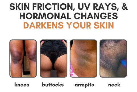 Certain parts of the body, such as elbows, knees, and the bikini line, are particularly susceptible to developing discoloration and uneven skin tone due to various factors like friction, prolonged sun exposure, and dryness. These elements can lead to the accumulation of dark spots and blemishes, causing these areas to appear darker than the rest of the skin. To effectively address this issue and achieve a more uniform complexion, a powerful and effective formula is essential. AEXZR™ Dark Spot Correcting Cream, a potent skin-whitening cream is specially formulated with a meticulously crafted blend of skin-lightening actives and natural ingredients. These actives work synergistically to target and fade dark spots, while the natural components help nourish and rejuvenate the skin, leaving it looking radiant and revitalized. By incorporating AEXZR™ into your skincare routine, you can confidently bid farewell to those discolored areas and embrace a smoother, more even, and glowing skin tone that radiates with beauty and confidence.