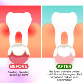 Anti-Inflammatory Action: AEXZR™ Gum Treatment Foam is infused with potent anti-inflammatory agents designed to target and reduce gum inflammation. These ingredients work by inhibiting the production of pro-inflammatory molecules like cytokines and prostaglandins, which are responsible for triggering the inflammatory response in gum tissues. By calming the inflammatory process, AEXZR™ helps alleviate redness, swelling, and gum discomfort.