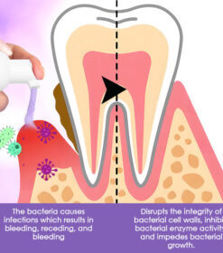 Antimicrobial Effects: The progression of gum disease is often fueled by harmful oral bacteria. AEXZR™ Gum Treatment Foam contains powerful antimicrobial agents that effectively combat these bacteria. The foam disrupts bacterial cell walls, inhibits bacterial enzyme activity, and slows bacterial growth, reducing the bacterial load in the gum tissue. By controlling these harmful bacteria, AEXZR™ promotes a healthier oral environment and prevents further gum damage.