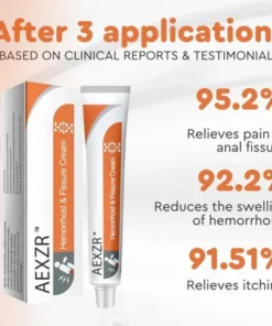 AEXZR™ Hemorrhoid & Fissure Cream is a powerful, dual-action formula that provides fast relief from pain and swelling in one product. Our advanced formula is specially designed to provide targeted relief from the symptoms of hemorrhoids and fissures, allowing you to regain control of your life. Developed by experts, this cream combines powerful ingredients with a soothing formulation to offer comfort and healing precisely where you need it most.
