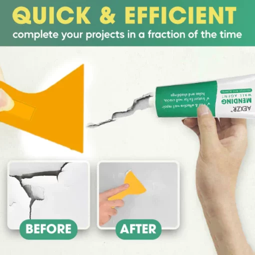 AEXZR™ Mending Wall Agent is designed to simplify wall repairs, giving you the confidence to tackle any restoration project with ease. Say goodbye to unsightly cracks, holes, and blemishes, and say hello to pristine, flawless walls!