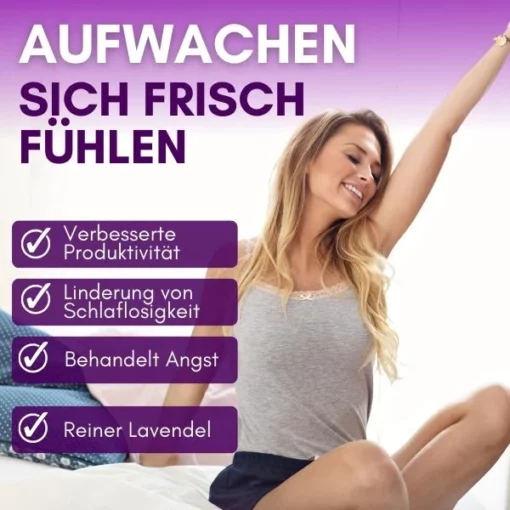 Verbesserte Schlafqualität: Studien haben gezeigt, dass der Duft von Lavendel den Tiefschlaf, die tiefe und regenerative Phase des Schlafzyklus, erhöhen kann. Das bedeutet, dass Sie nicht nur schneller einschlafen, sondern auch mehr erfrischende Erholung genießen.