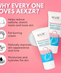 AEXZR™ Stretchmark Repair Cream works by stimulating the production of collagen and elastin in the skin. Collagen and elastin are essential proteins that give the skin its elasticity and firmness. The cream’s unique formula also helps to moisturize and hydrate the skin, improving its texture and appearance.