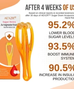 The AEXZR™ Sugar Down Acupuncture Hand Roller works by utilizing the principles of acupuncture to stimulate pressure points in the hand that has been shown to help regulate blood sugar levels. These pressure points are thought to influence the body’s energy flow or Qi and can have an effect on various bodily functions, including blood sugar regulation.