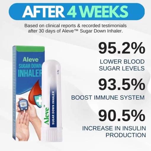 The natural ingredients in the Aleve™ Sugar Down Inhaler work to improve insulin sensitivity, a condition where the body is less responsive to insulin. This hormone helps regulate blood sugar levels, and people with diabetes often have insulin resistance. By improving insulin sensitivity, the inhaler helps the body use insulin more effectively, leading to better blood sugar control.