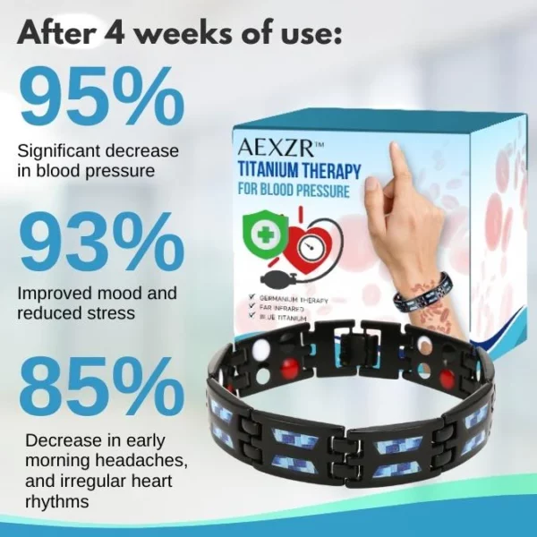 Introducing the AEXZR™ Titanium Therapy Bracelet – a natural and stylish solution for managing your blood pressure. This innovative bracelet utilizes the power of Germanium negative ion emission and Blue Titanium Therapy to help regulate your blood pressure and promote overall well-being. With no known side effects, the AEXZR™ Titanium Therapy Bracelet is an easy and convenient way to manage your blood pressure and reduce stress. So why wait? Try it out today and experience the benefits for yourself!