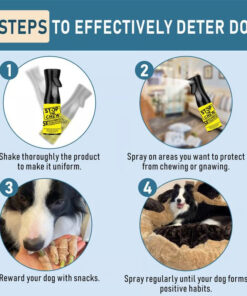 Whether you’re dealing with teething puppies or adult dogs with stubborn chewing habits, this spray is designed for dogs of all ages and breeds.