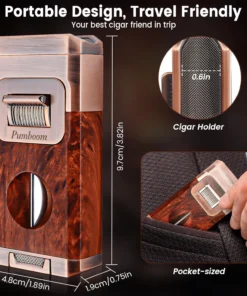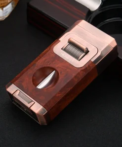 – [Luxuriöses Multifunktionsfeuerzeug] Unser Feuerzeug macht es standfest, winddicht und lässt sich in den V-förmigen Schneider perfekt integrieren. Sein praktisches und innovatives Multifunktionsdesign kann Ihre Reise einfacher und angenehmer machen. Außerdem verfügt dieses coole Feuerzeug über einen Körper aus gebürstetem Metall in Rotbronze, ergänzt durch ein Design im Holzmaserungsstil, das die drei Elemente Vintage, Eleganz und Natur vereint. Perfekt, um Ihren raffinierten Geschmack zu präsentieren.