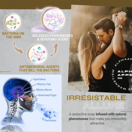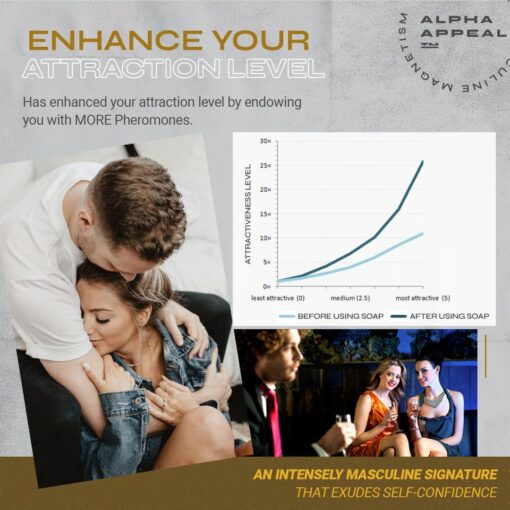 Welcome to AlphaAppeal™ Masculine Magnetism Soap – the grooming product that’s about to take your masculinity to the next level. If you’re tired of feeling like just another guy in the dating game, it’s time to make a change. Our unique formula is designed to enhance your natural pheromones, making you irresistibly attractive to anyone you meet.