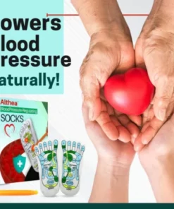 By targeting specific acupressure points on the feet using the printed socks and the stick, Althea™ Blood Pressure-Regulating Socks aim to promote overall health and wellness, all while, providing a comfortable and convenient way to regulate blood pressure and reduce the risk of associated conditions like heart disease and stroke.