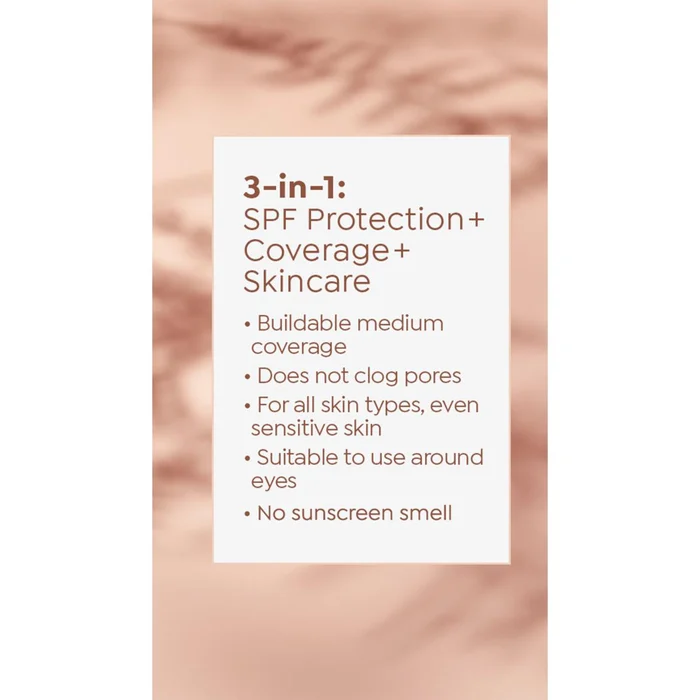 - A formula of sunscreen, light-protecting pigments and skin-loving ingredients for temporarily, healthy-looking skin