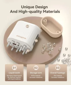 Dispense the serum by pressing the tank cap, and then move the device in circular motions across the scalp.