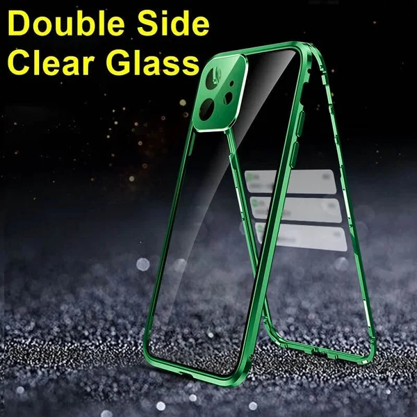 Transparent Tempered Glass Cover (Front & Back) + Metal Bumper: Shows the original phone design that preserves the phone natural appearance.