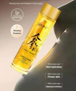 Anti-Wrinkle Ginseng Essence Water is a premium skincare product enriched with Korean Red Ginseng extract. This essence water deeply hydrates, firms, and rejuvenates the skin, helping to reduce the appearance of wrinkles and fine lines, leaving the skin with a youthful, radiant glow.