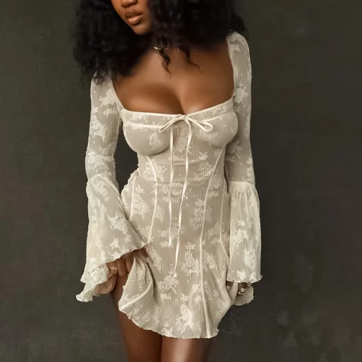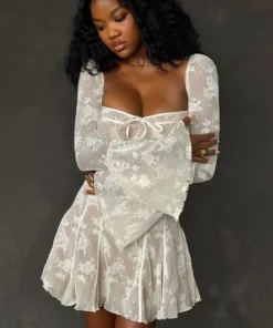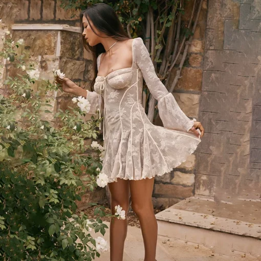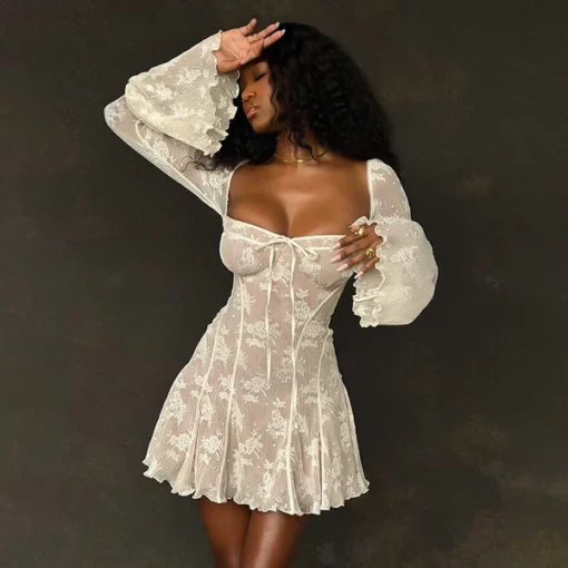 Crafted with attention to detail, the delicate lace fabric exudes a sense of sophistication and grace. The long sleeves add a touch of refinement while the slim fit complements your figure flawlessly.