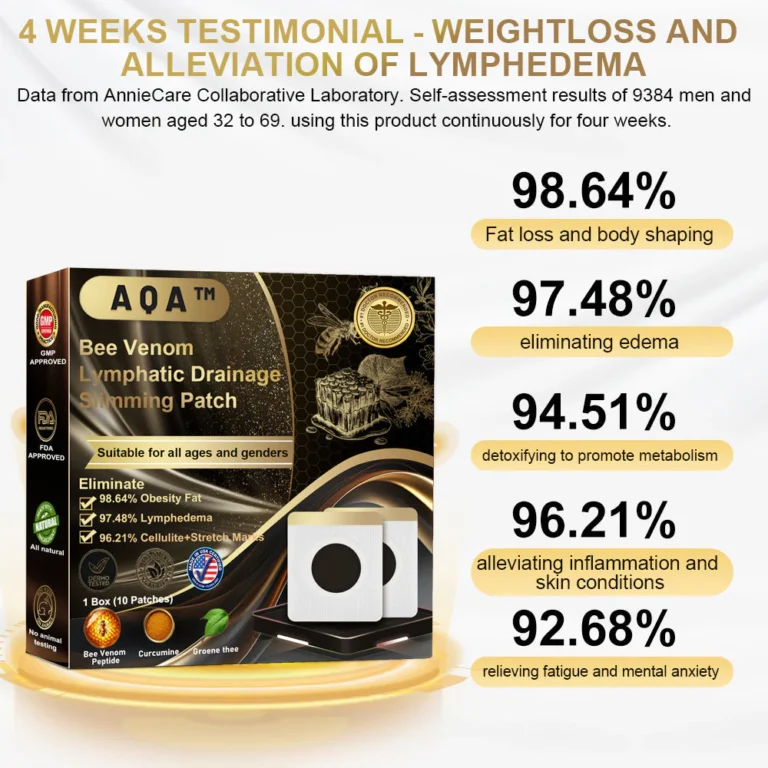 I have combined various botanical ingredients, long known for their benefits to the lymphatic system and body metabolism, to create AQA™ Bee Venom Lymphatic Drainage Slimming Patch. Experimental evidence indicates that this lymphatic drainage slimming patch is the optimal choice for improving the lymphatic system. The blend of these natural botanical ingredients, coupled with the potent properties of bee venom, offers a groundbreaking solution for swiftly addressing metabolic disorders and lymphatic congestion issues.