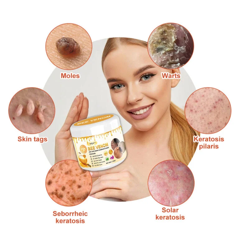 The 𝐁𝐞𝐞 𝐕𝐞𝐧𝐨𝐦 𝐌𝐨𝐥𝐞 𝐚𝐧𝐝 𝐖𝐚𝐫𝐭 𝐓𝐫𝐞𝐚𝐭𝐦𝐞𝐧𝐭 Cream is the solution harness the potent properties of bee venom to effectively target various skin imperfections, including skin tags, moles, warts, and spots. Infused with active compounds extracted from bee venom, this advanced formula to break down and gently removing unwanted growths.