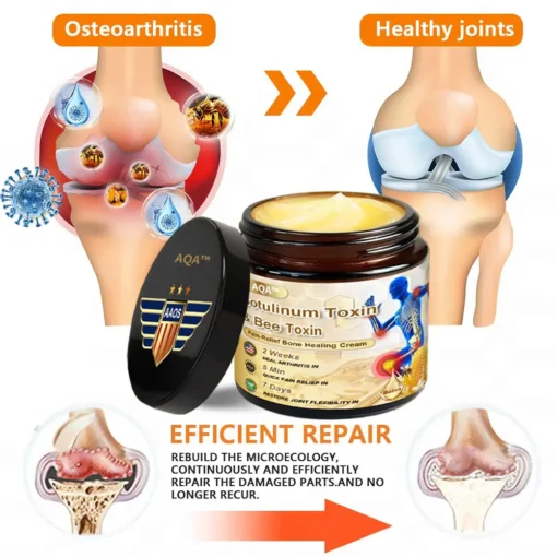 The AQA™ Botulinum and Bee Toxin Pain Relief Bone Healing Cream is known for its effectiveness in treating a variety of orthopedic issues.