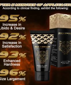 During an erection, the arteries expand to increase blood flow to the penis. When the blood fills two tubes of spongy tissue in your weapon, causes them to swell, making your weapon larger and stiff. AQA™ MaxiMan Massage Gel helps promote blood circulation, makes you erect faster when it needed.