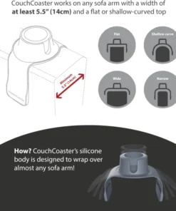 The ultimate drink holder for your sofa, is the only coaster which securely holds your favourite drinks – hot or cold – on your couch, armchair or recliner (fabric or leather).