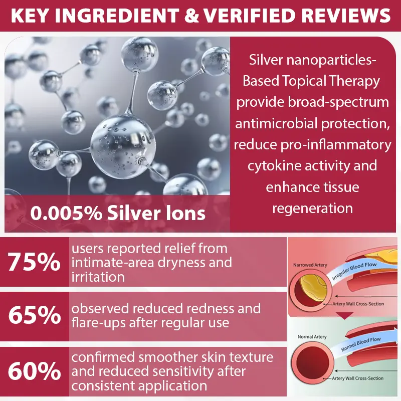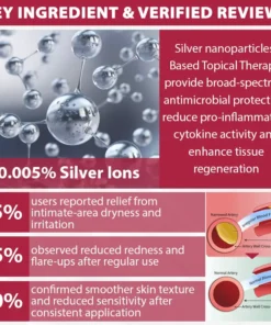 Contains 0.005% silver ions, a concentration proven to be safe for mucosal application while promoting skin barrier integrity and tissue recovery.