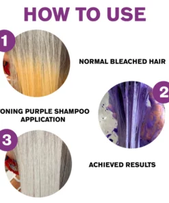 Apply ATTDX AntiBrassiness Toning PurpleShampoo to wet hair and massage. Leave on for 1 to 5 minutes, lather, and rinse thoroughly. For best results, follow with No Yellow Purple Mask toner as a system to ensure your ideal blonde tone by leaving it with a cold tone and a soft, shiny, silky texture.
