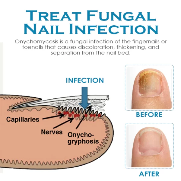Fungal nail infections, also called onychomycosis, are very common. They can be embarrassing and cause odors or itchiness. Fungal nail infections are caused by many different types of fungi that live in the environment. Small cracks in your nail or the surrounding skin allow these germs to enter your nail and cause an infection.