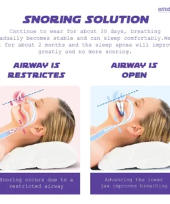 ATTDX AntiSnoring DentaGuard Mouthpiece’s unique design secures an unobstructed airway, promoting unrestricted airflow and more profound, revitalizing sleep. Experience an enhancement in your overall well-being, waking up each morning feeling rejuvenated and energized.