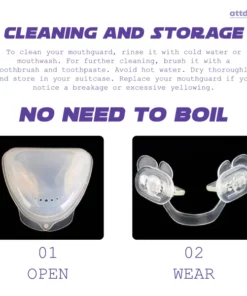 Cleaning the ATTDX AntiSnoring DentaGuard Mouthpiece is a straightforward process. Just rinse it under cool running water each day with a small amount of liquid soap. If there is any remaining debris, consider using a gentle toothbrush or a cotton swab for thorough cleaning. It’s important to avoid toothpaste with abrasives, as these can gradually harm the surface of your snoring device and potentially lead to staining. Refrain from using bleach, alcohol, or other harsh chemicals during the cleaning process for the longevity of your mouthpiece.