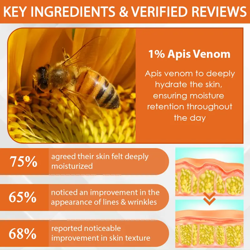 Formulated with 1% Bee Venom Peptides and 100% natural plant extracts, it is safe for all skin types, including sensitive skin.