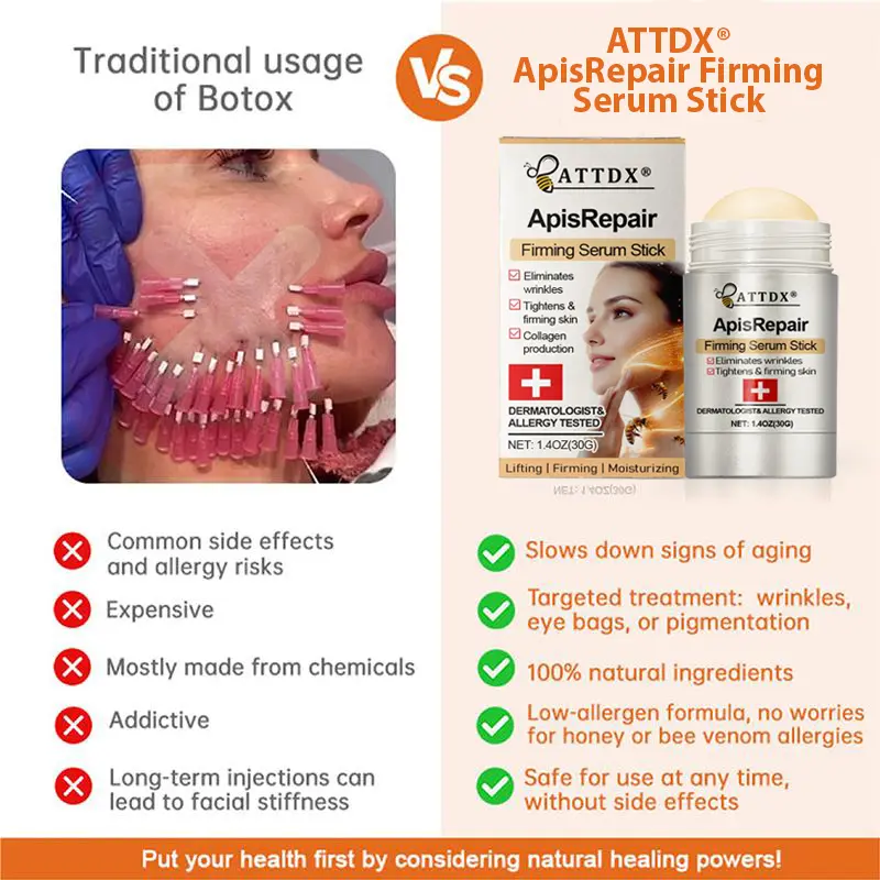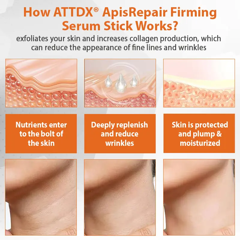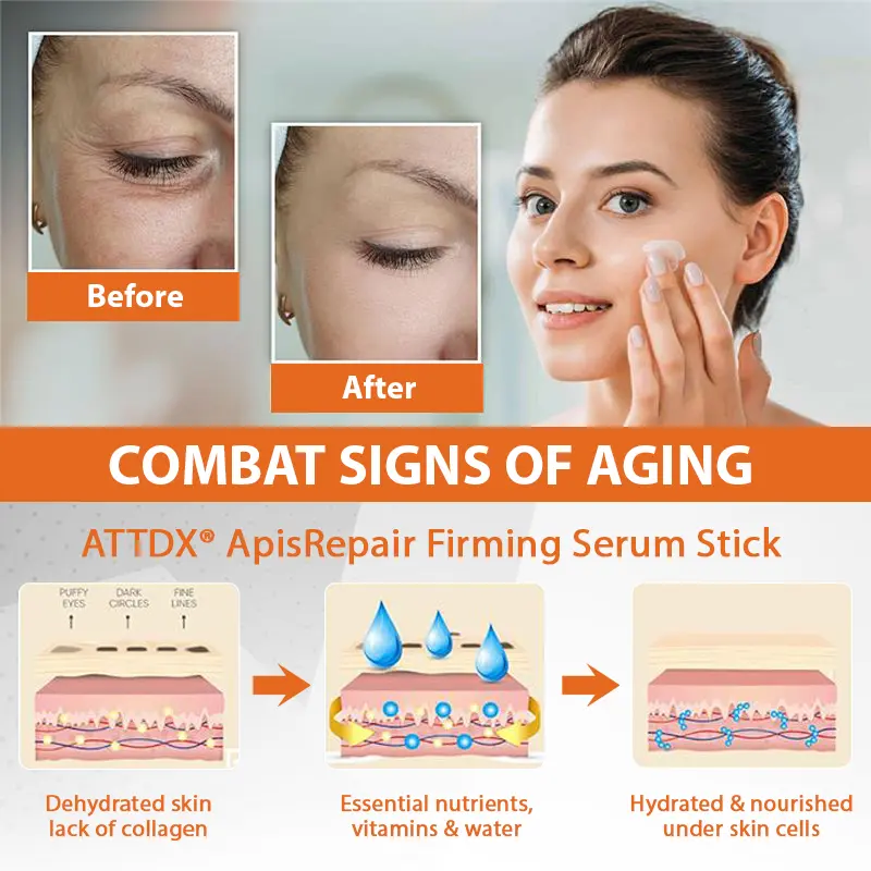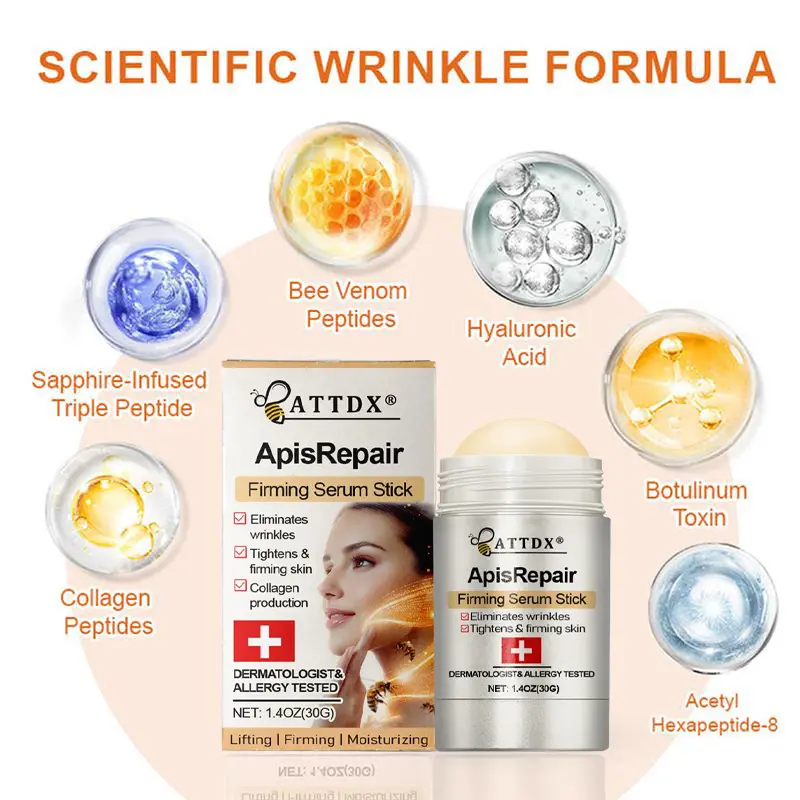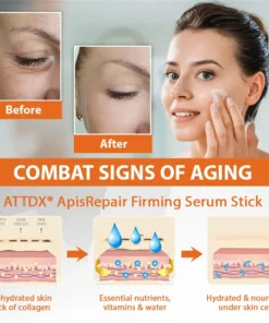 ATTDX® ApisRepair Firming Serum Stick targets the visible signs of aging by reducing expression lines and deep wrinkles, offering a non-invasive alternative to traditional treatments.