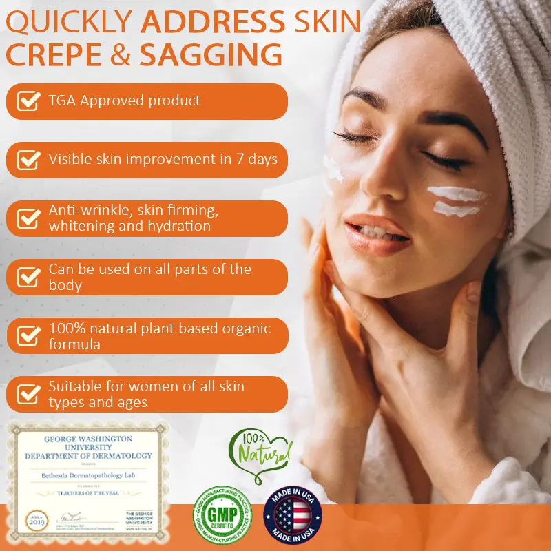 The serum helps reduce stretch marks, tighten loose skin, and improve the firmness of areas like the abdomen, arms, breasts, and buttocks. It delivers visible results without any harmful side effects.