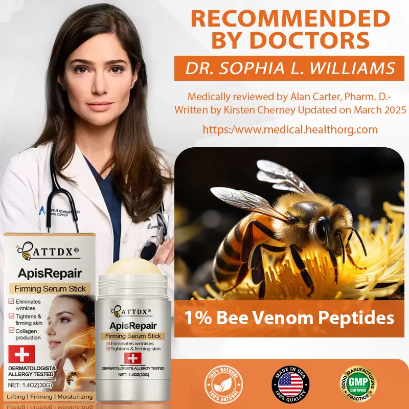 ATTDX® ApisRepair Firming Serum Stick is powered by Bee Venom Peptides, particularly melittin and apamin, which work together to improve wrinkles, sagging, age spots, and stretch marks through collagen stimulation and skin cell regeneration.