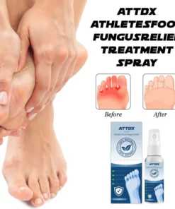 ATTDX AthletesFoot FungusRelief TreatmentSpray is a scientifically proven, fast-acting solution to bacterial foot conditions. ATTDX AthletesFoot FungusRelief TreatmentSpray is safer and faster than other methods for treating fungal infections, athlete’s foot, and bad smells. The spray kills 99.99% of bacteria in less than 1 minute and maintains the skin’s pH balance for 7 days. The spray contains only natural ingredients that are safe to use and promote the healing of dry, brittle nails and damaged skin.