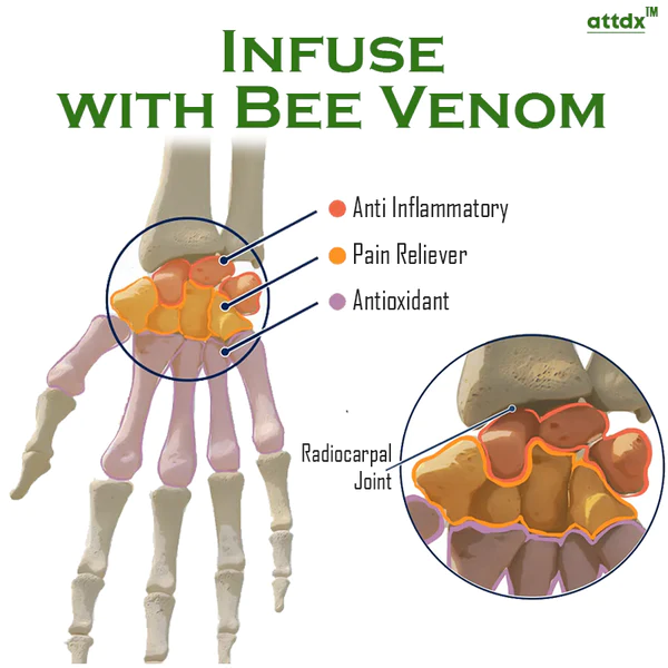 The ATTDX BeeVenom Joint Relief Patch represents a potent fusion of nature’s most exceptional elements, meticulously designed to deliver precise relief while supporting the well-being of your joints and bones.