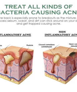 Back acne is acne that develops on your back. It happens when sweat, oil, dead skin cells, and bacteria get trapped in your skin’s pores. Backpacks, sweaty shirts, or sports equipment can create friction on your back and worsen back acne. Acne can occur on any part of the body, but it is most common on the back because the mixture of excess sebum, sweat, and dirt can stick around on your skin and get trapped under layers of clothing. This creates a breeding ground for acne-causing bacteria.